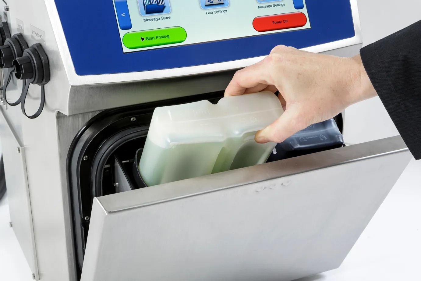 Smartfonlara bənzər sensor ekran sayəsində mesaj seçimi, yaradılması və printerin idarə edilməsi indi daha sürətlidir. Öz-özünə texniki qulluq imkanı və minimal müdaxilə ehtiyacı sayəsində printer daha uzun müddət fasiləsiz işləyir.