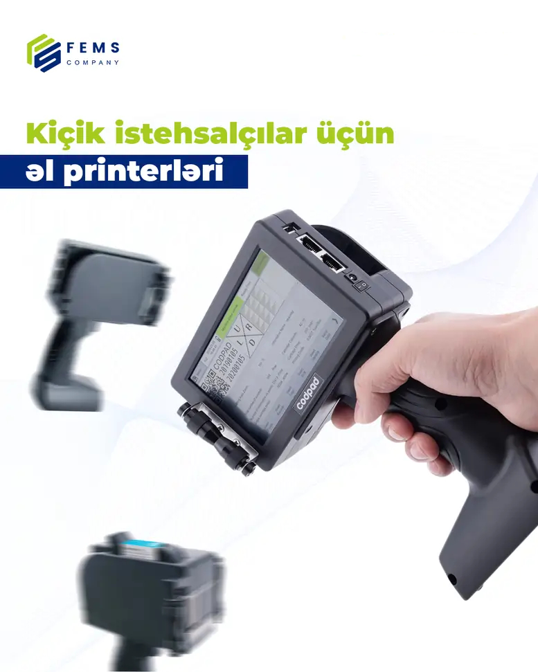 Əl printerləri kiçik istehsalçılar üçün məhsul etiketləmə və kodlaşdırma proseslərini sadələşdirən, maliyyə və əməliyyat baxımından səmərəli bir həlldir. Əl printerinin üstünlükləri arasında portativlik, çoxşaxəli istifadə, yüksək keyfiyyətli çap və ətraf mühitə dost xüsusiyyətlər yer alır. FEMS Company-nin təklif etdiyi el printeri modelləri ilə siz də istehsal proseslərinizi optimallaşdıra və məhsullarınızı daha peşəkar şəkildə təqdim edə bilərsiniz.
